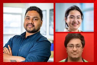 Clockwise from left, Varun Biyyala, lead author of the study, a 2024 graduate of the M.S. in Artificial Intelligence and Katz School industry professor; Jialu Li, a co-author of the study and an artificial intelligence master’s student; and Bharat Chanderprakash Kathuria, an artificial intelligence master's student and one of the lead researchers.